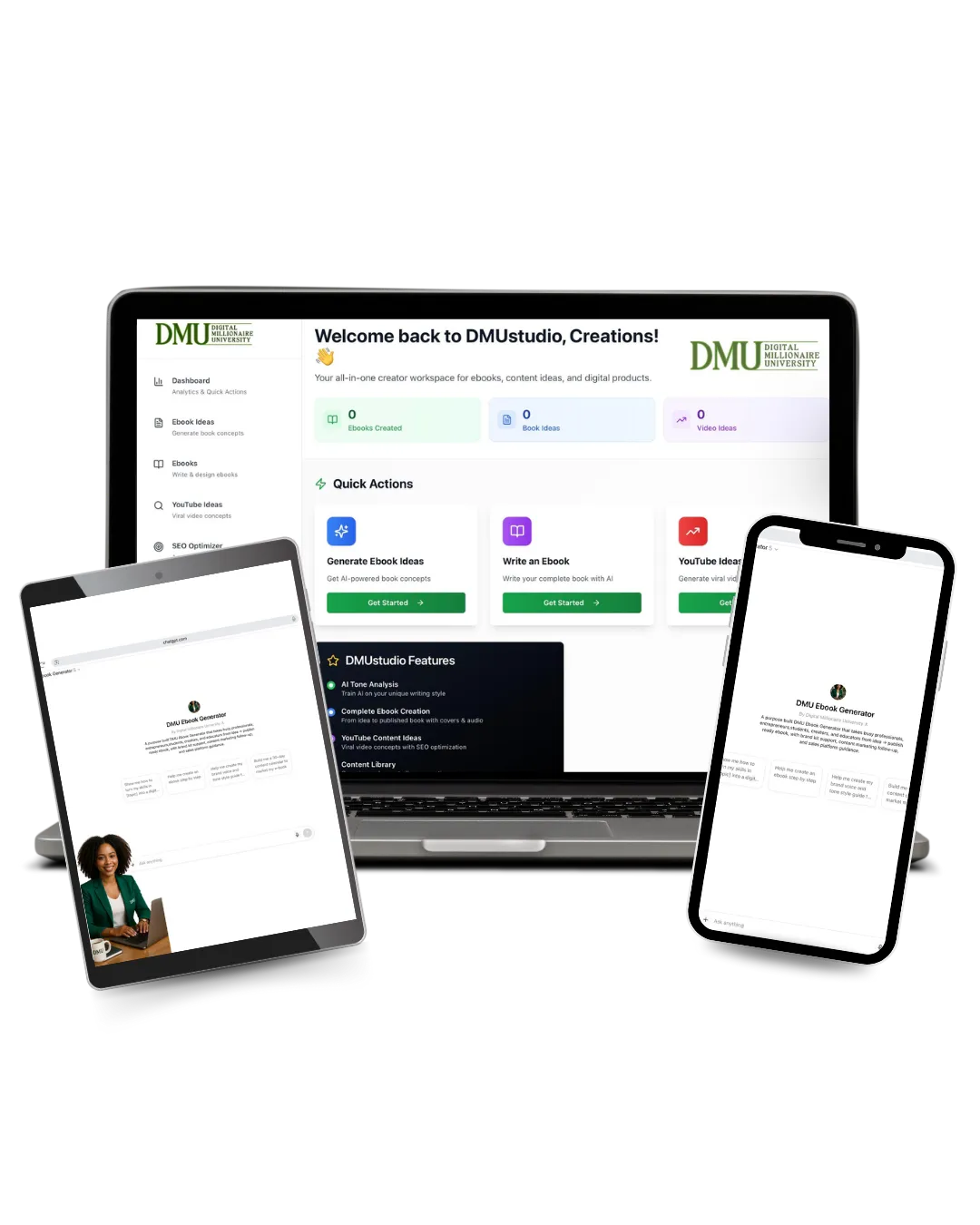 Get instant access to your Custom DMU Ebook Generator GPT and the DMU Studio App, your all-in-one system to create ebooks, generate YouTube content ideas, and organize your ideas into a profitable plan.